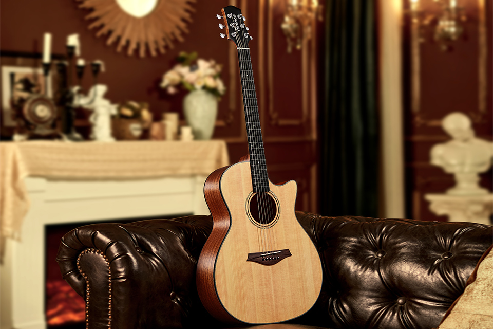 指板の素材は硬く、高強(qiáng)度?高硬度?高安定性を持ち、水分や濕気の影響を受けにくく、音の伝導(dǎo)性に優(yōu)れ、伝統(tǒng)的なドットインレイと組み合わせられています。 |